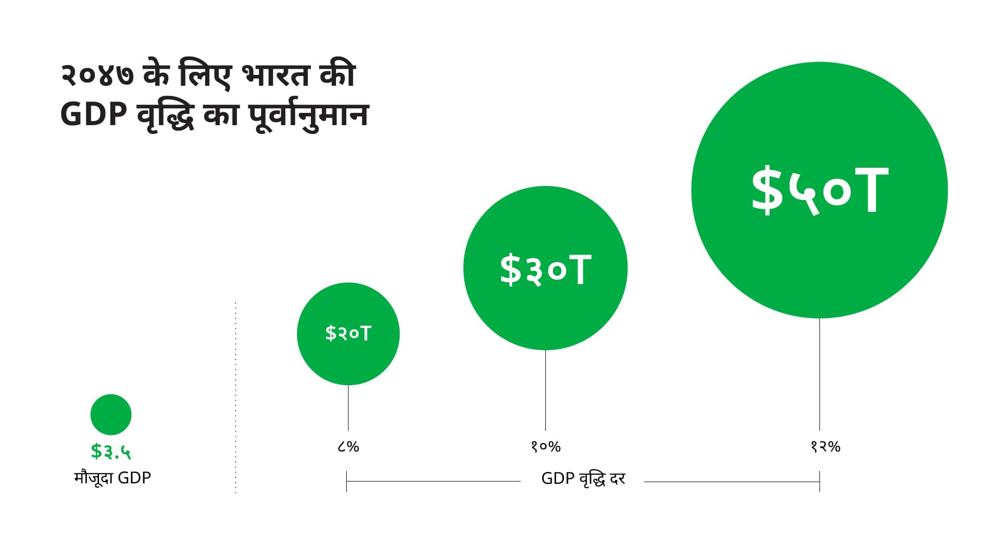 पिछले दस सालों में, भारत दुनिया की सबसे तेजी से बढ़ती बड़ी अर्थव्यवस्थाओं में से एक बनकर उभरा है। इस दौरान हमारी जीडीपी लगभग दोगुनी होकर ३.५ ट्रिलियन डॉलर हो गई है। यह विकास हमारी मजबूती और क्षमता का संकेत है, खासकर वैश्विक चुनौतियों के बावजूद। हम विकसित भारत के लक्ष्य के साथ एक नए युग में प्रवेश कर रहे हैं। अगले २३ साल, २०४७ तक, हमारे लिए बहुत महत्वपूर्ण हैं। अगर हम अपनी आर्थिक विकास दर को ८% से बढ़ाकर १२% कर लें, तो भारत को ५० ट्रिलियन डॉलर की अर्थव्यवस्था बना सकते हैं, जिससे समृद्धि और वैश्विक नेतृत्व का नया युग शुरू होगा।