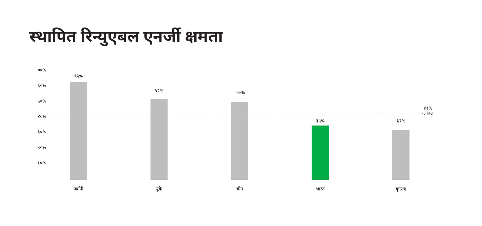 भारत ने रिन्युएबल एनर्जी में बड़ी प्रगति की है। २०१४ में हमारी रिन्युएबल एनर्जी क्षमता ७२ गीगावाट थी, जो २०२३ में बढ़कर १७५ गीगावाट से ज्यादा हो गई। खासकर सोलर एनर्जी में जोरदार वृद्धि हुई है। सोलर एनर्जी की क्षमता ३.८ गीगावाट से बढ़कर ८८ गीगावाट से ज्यादा हो गई है। हालांकि, हम अभी भी चीन जैसे देशों से काफी पीछे हैं। २०२३ में, चीन ने २१५ गीगावाट सोलर एनर्जी क्षमता स्थापित की। हमें इस बदलाव को तेजी से आगे बढ़ाने और सभी के लिए एनर्जी की लागत कम करने के लिए रिन्युएबल एनर्जी के विकास पर ध्यान देना होगा। प्रोडक्शन लिंक्ड इंसेंटिव (PLI) स्कीम्स और सरकारी समर्थन के साथ, हम अपनी रिन्युएबल एनर्जी क्षमता को और बढ़ा सकते हैं, स्वच्छ ऊर्जा को अधिक सुलभ और किफायती बना सकते हैं, और २०३० तक ५०० गीगावाट रिन्युएबल एनर्जी क्षमता के अपने लक्ष्य को हासिल कर सकते हैं।