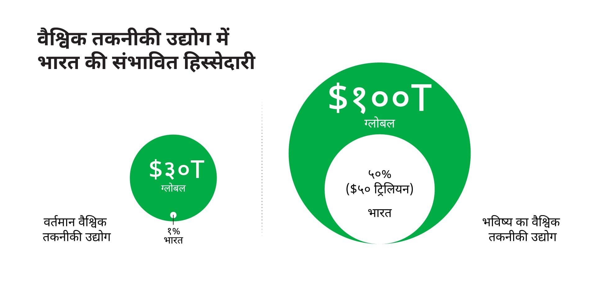 भारत की अर्थव्यवस्था अब काफी हद तक डिजिटल हो गई है। लेकिन हमारे मुकाबले अन्य देशों में कंप्यूट तकनीक का इस्तेमाल ज्यादा है। आईटी सेवाओं में हमारी बड़ी सफलता के बावजूद, ३० ट्रिलियन डॉलर की वैश्विक तकनीकी इंडस्ट्री में हमारी हिस्सेदारी केवल १% है। हमारे समकक्ष देशों ने आर्टिफिशियल इंटेलिजेंस (AI) में अपनी क्षमताएं बढ़ाने के लिए तेजी से निवेश बढ़ाया है। उन्होंने अनुसंधान, बुनियादी ढांचे और प्रतिभा विकास में सैकड़ों अरब डॉलर लगाए हैं ।